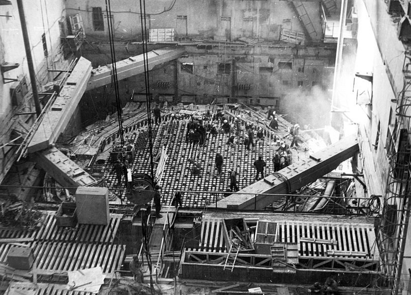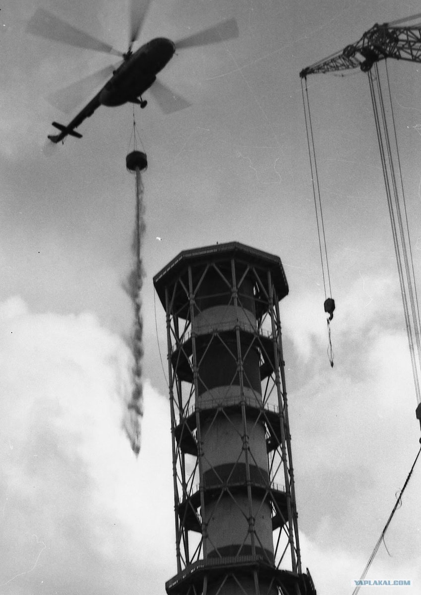 كان قلقهم الأكبر هو أن المفاعل لا يزال مستمر في الإنشطار. وهذا يمكن أن يُحدث انفجاراً أكبر وأكثر جدية. اقترح عليهم أحد المسؤولين أن ترمى أطناناً من الرمل والبورون ”مادة كيميائية" باستعمال الطائرات على المفاعل لمحاولة اخماده وجعله يستقر.