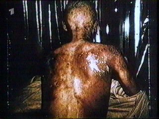 "شعرت بضربة ثقيلة...جدران الغرفة السميكه انحنت كأنها مطاط.. شعرت بأن الحرب اندلعت...البخار ملأ الجو والتف حول كل المبنى، كان المكان مظلم، وكانت هناك ضوضاء مرعبة، ولم يكن هناك أسقف.”