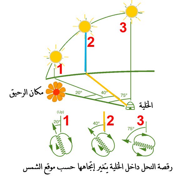 - إتجاه الحركة الإهتزازية معتمد على موقع الرحيق و أيضاً موقع الشمس.