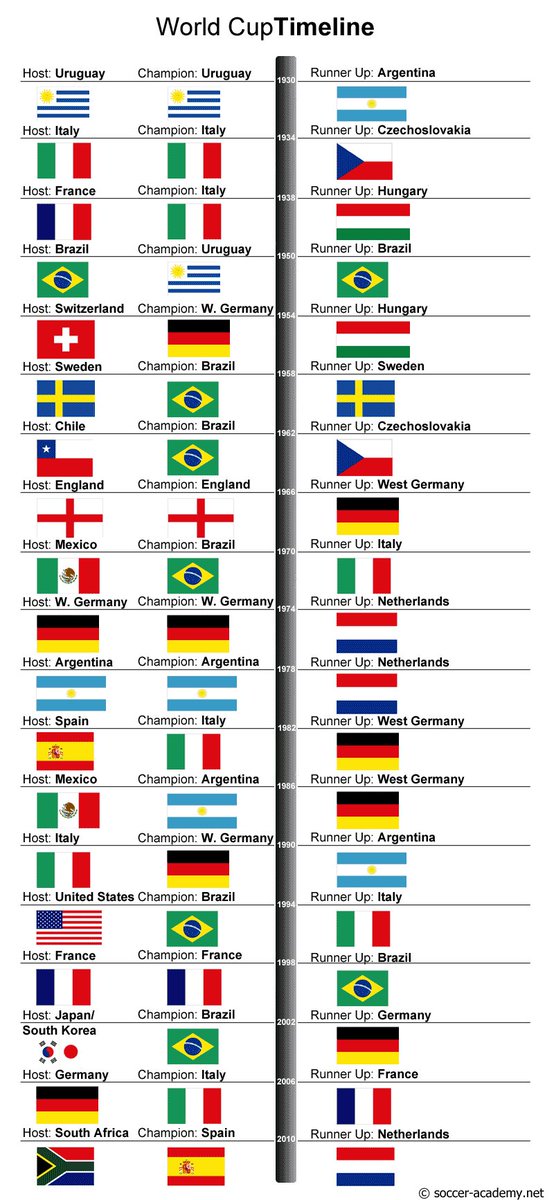 قارنوا هذا بـ فوز البرازيل 5 مرات و ألمانيا وإيطاليا 4 مرات و مؤخرا إسبانيا مرة و قبل ذلك فرنسا مرة !
