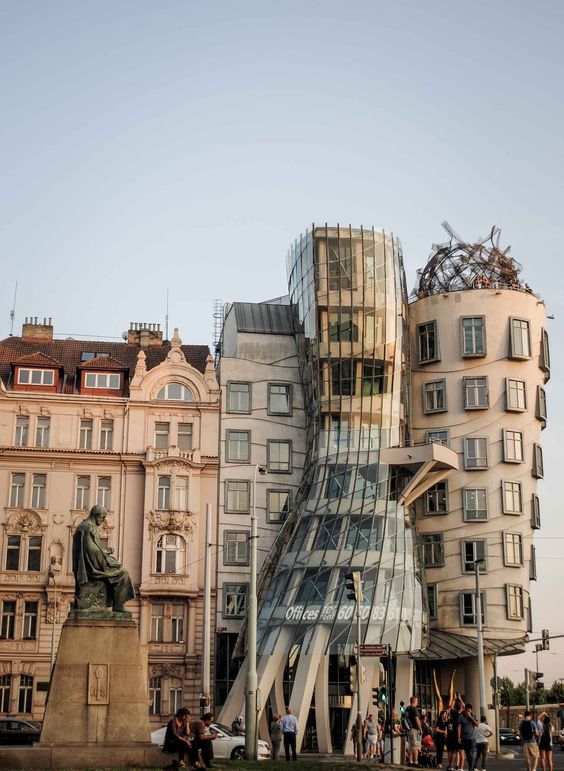 The Dancing House في وسط مدينة براغ ويشار اليه أيضا إلى مبنى (فريد و جينجر) حيث يشبه بشكل مبهم راقصي هوليود فريد وجينجرعام 1930 .وقد صمم الهيكل غريب الأطوار من قبل فرانك قيري بالتعاون مع المعماري التشيكي فلادو ميلونيتش في عام 1992.