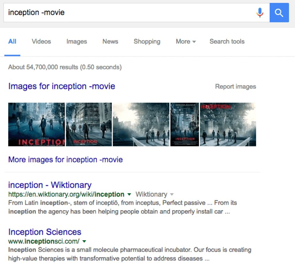 ضع الكلمتين او الكلمة كالتالي inception -movie