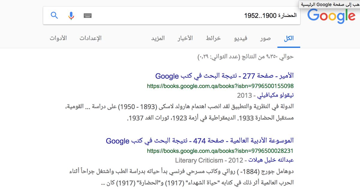 البحث فى فترة زمنية ما بين 1900 و1952 + الحضارة