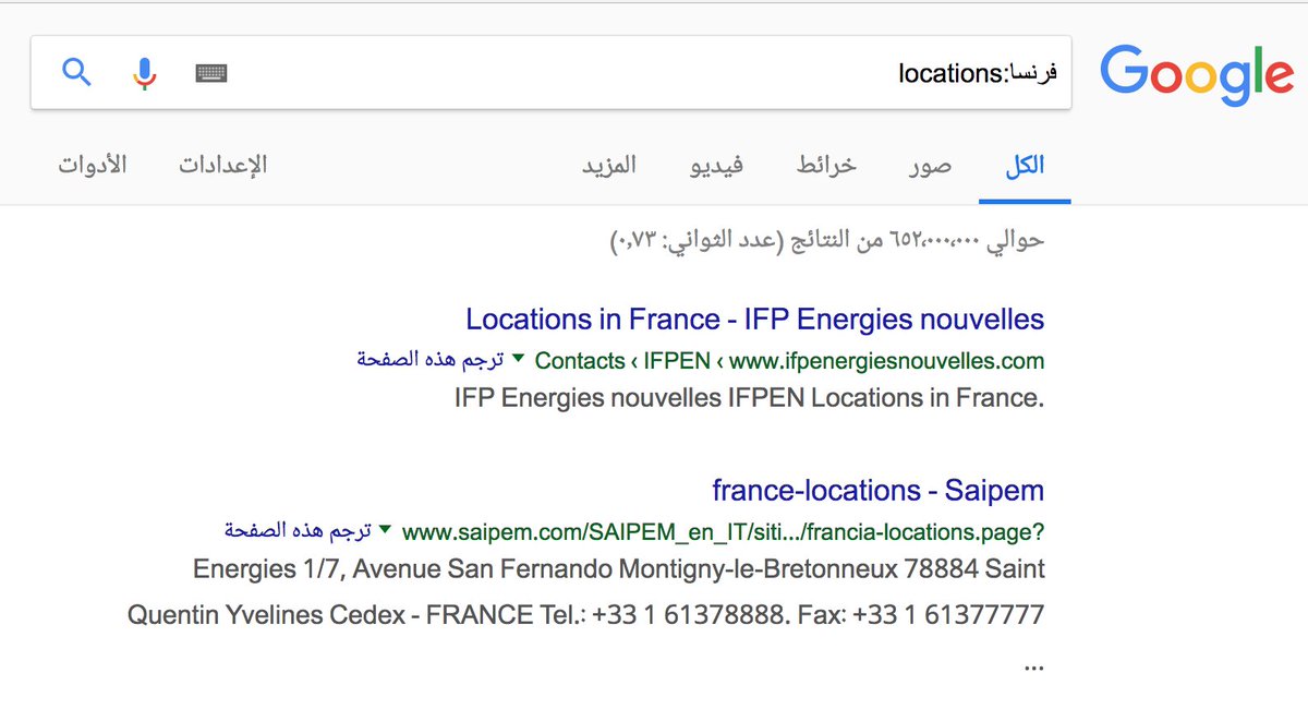 للبحث فى نص :intext – للبحث فى عنوان صفحة/مقالة :intitle – للبحث فى رابط موقع :inurl