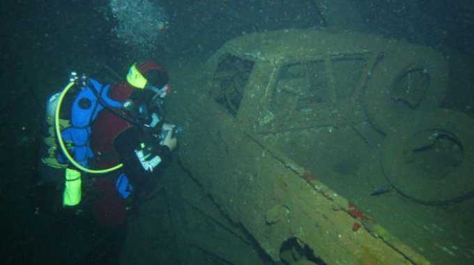 السياح وهواة الغطس عندهم صور بيعتبروها تحدي وهي لقطات بيظهر فيها الغواص كأنه بيسوق السيارة الغارقة مع فك عدة الغطس لفترة بسيطة لغاية ما يتصور كجزء من المغامرة