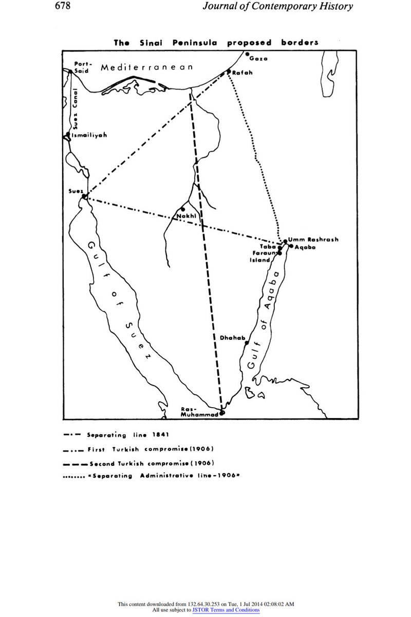 ٢. خط الحدود المصرية يمتد من رفح لام الرشراش ذلك بتحويل التصريح الاداري في برقية جواد باشا الصدر الاعظم العثماني فرمان ١٤ ابريل ١٨٩٢ ليصبح واقع رسمي فيه كامل سيناء مصري عثماني