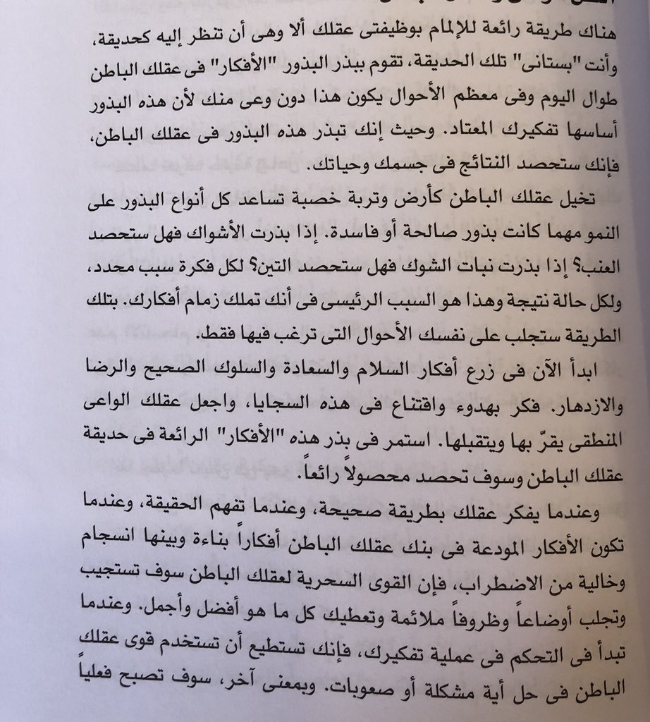 أفكارك مع الأيام تتحول إلى أوعية من المبادي والمعتقدات ، وهذه المبادئ تَتولد منها مشاعرك وسلوكك .