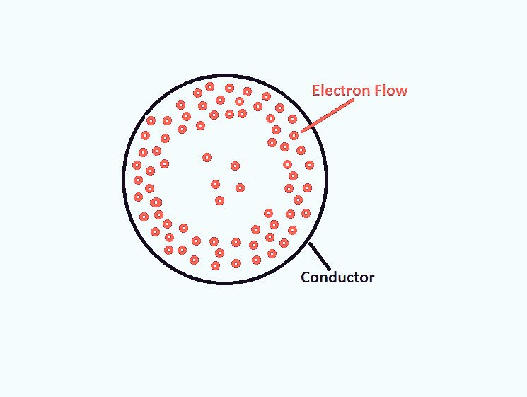 إذا اعتبرنا للتبسيط أن الموصل عبارة عن عدد من النقاط موزعة حول المركز (على شكل دائرة) فعند مرور تيار AC سينتج فيض مغناطيسي magnetic-flux وهذا الفيض يكون أقوى بالقرب من المركز عنه في النقاط الأخرى البعيدة عن المركز كالسطح الخارجي.