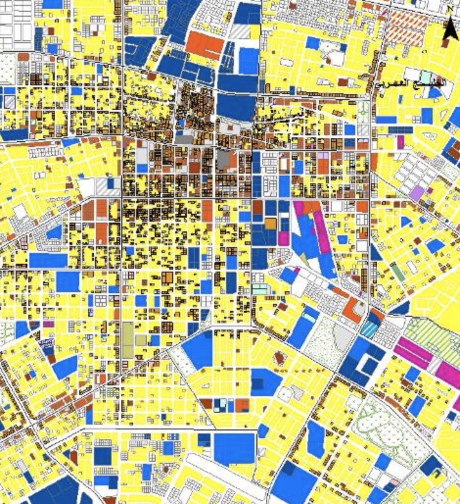 الكتلة العمرانية: اجمالي المساحة المشغولة بالأنشطة المختلفة وقد يتخلل هذه المساحة ارض فضاء منطقة او مسطحات مائية او اراضي مزروعة ونحوه وتشمل التقسيمات التي تم اعتمادها.