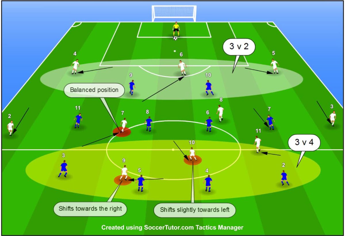 النقاط اللي راح اشرحها بناء على خصم يلعب ضدك بمهاجمين بخطة ٤-٤-٢ او ٤-٥-١ ( مع صعود صانع اللعب بجانب المهاجم اثناء عملية الضغط ) بيلسا المعروف عنه اللعب بطريقة ٤-٢-٣-١ بشكل اساسي لكن تختلف ادوار اللاعبين داخل ارضية الملعب و تتحول الخطة الى عدة رسوم فنية اثناء الهجوم او الدفاع.