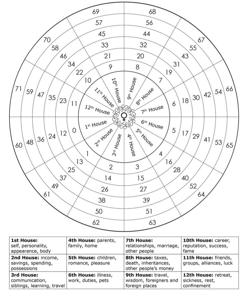 يعني مثلا ، زهرة الحمل في البيت الثاني و البيت اللي بعدها يكون الثور في الثالث ، يعني المشاكل بسبب نقص التواصل و عدم التعبير عن العواطف بالكلام ؛ و هكذا احسبوها ع البيت و البرج اللي فيه.