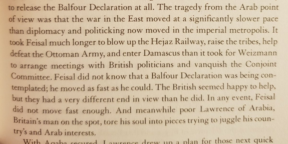 على ١٩١٧ كان البريطانيين يتعاملون مع اليهود عن طريق السيد سايكس و العرب عن طريق لورنس. البريطانيين اعطوا اليهود و العرب وعدين مختلفين في نفس الوقت