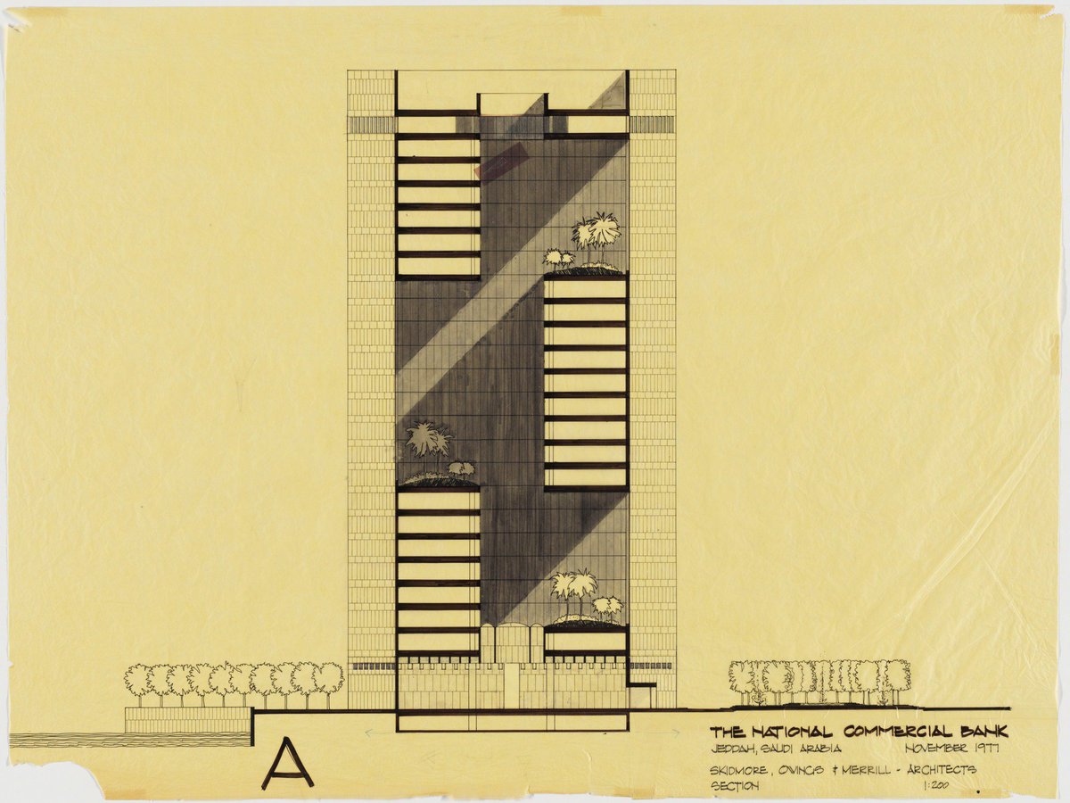 أدرجت شركة SOM سمتان من السمات الهامة الموجودة في العمارة الإسلامية التقليدية وهي التهوية الطبيعية والتوجيه إلى الداخل في مبنى البنك الأهلي التجاري بجدة.