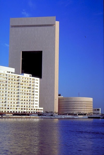 قبل البدء بالحديث عن المبنى أود الإشارة الى أن المرحلة الأخيرة من مسيرة المصمم Gorden Bunshaft غوردن بونشافت والذي صمم هذا المبنى كانت قد ابتدأت في السعودية حيث قام بتصميم صالة الحجاج بمطار الملك عبد العزيز بجدة سنة ١٩٨٣ والحاصلة على جائزة AIA في عام ٢٠١٠،