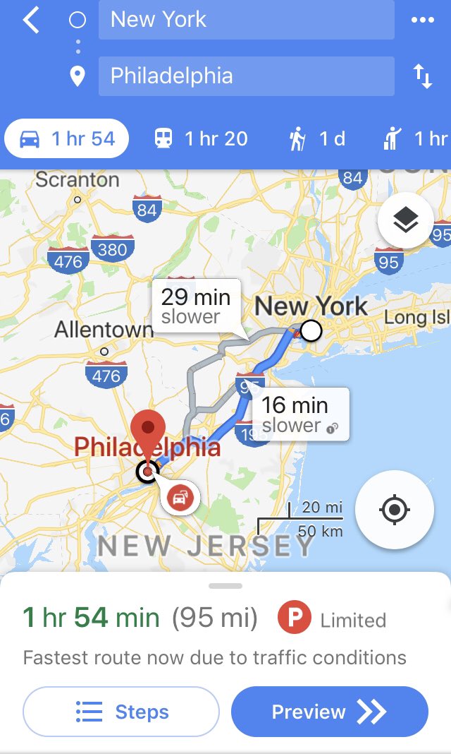 ٢.قطار: الانطلاق من محطة المطار إلى محطة (Penn Station) في وسط مانهاتن وتكلفتها حوالي 8$