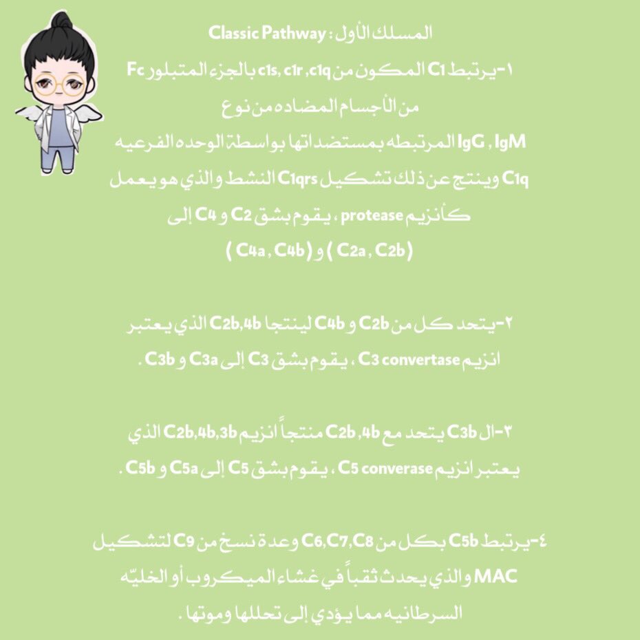 قبل ماأشرح أكثر عن تنشيط الكومبلمنت او المتمّمه حابه أنبه إن زميلتي "ص.أبرار " أشارت أن complement system يتكون من ثلاث مسارات :