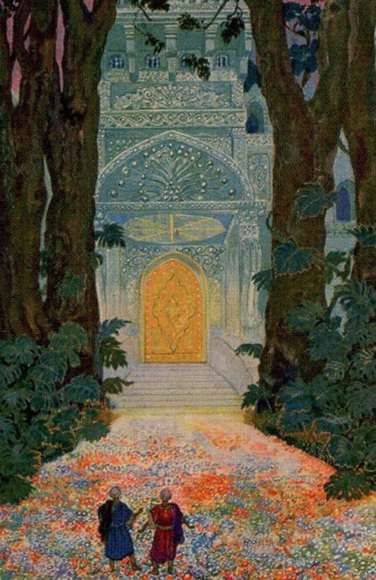 { علي بابا والأربعون حرامي } لوحة للرسام الأمريكي ماكسفيلد باريش عام 1909 . #عربي