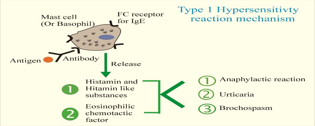نبدأ بأول نوع من فرط التحسس، Allergic or immediate hypersensitivity reactions