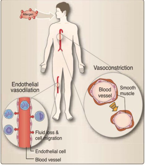 في بعض الحالات ممكن يتم حقن الأنتيجن (سم الأفاعي أو لدغات الحشرات، ممكن بعض الأدوية)، وقتها حيكون سهل وصوله لكامل الجسم عن طريق وجوده في الدم مما يسبب systemic inflammation. فيحصل Anaphylaxis and shock