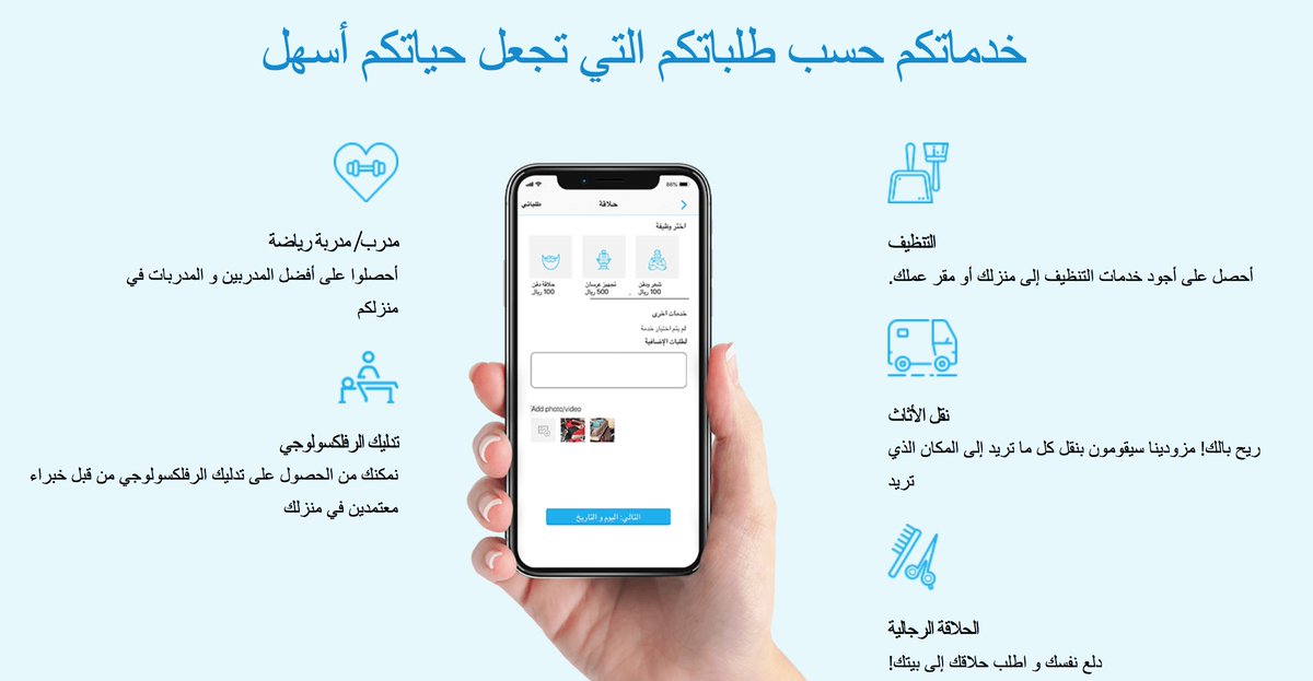 فكرته: دلعني تطبيق لتقديم خدمات منوعة مثل الحلاقة والتدريب الرياضي وغيرها من الخدمات المختلفة?