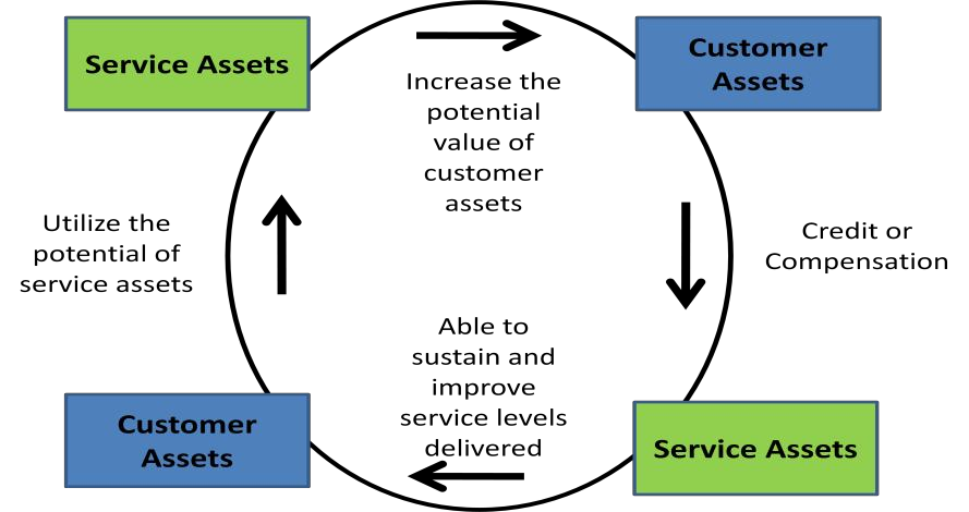 في سياق تقديم الخدمات ، تعمل أصول مقدم الخدمة مع أصول العميل كوسيلة لزيادة أداء أصول العميل. هذا يسبب طلب العملاء على الخدمات.