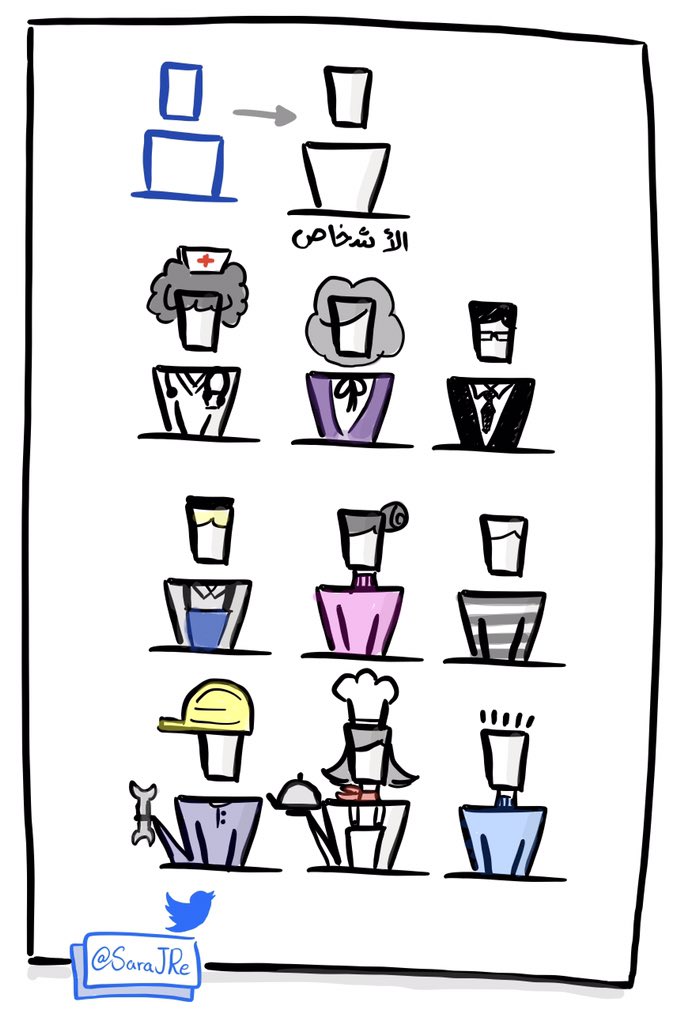 رسم الأشخاص في #التدوين_البصري 👤 بأكثر من طريقة، ممكن بالنسبة لي الأبسط منها عن طريق (المستطيل والمربع..).