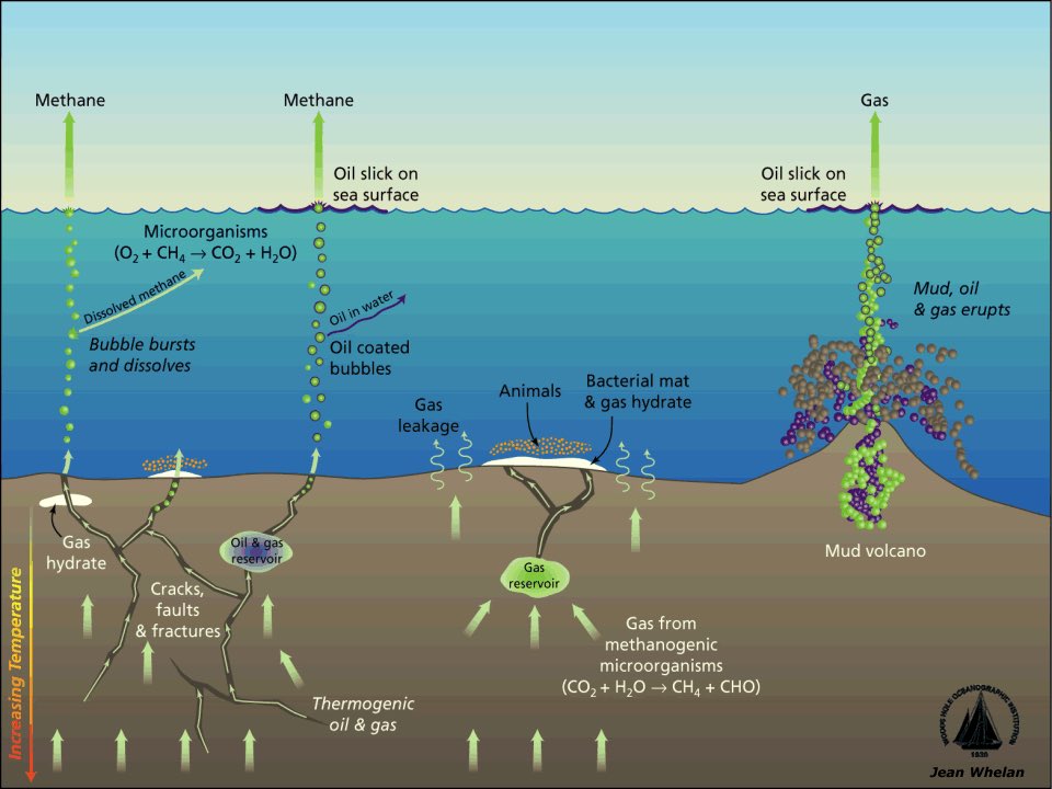 وتحول غاز الميثان إلى مادة صلبة نتيجة الضغوط الهائلة التي يتعرض لها في أعماق المحيطات، أي أنها تتجمد. ويمكن لقطعة متجمدة من هذا الغاز أن تنفصل وترتفع لأعلى لتعود سريعا إلى الصورة الغازية مكونة فقاعة ضخمة على سطح المحيط. !
