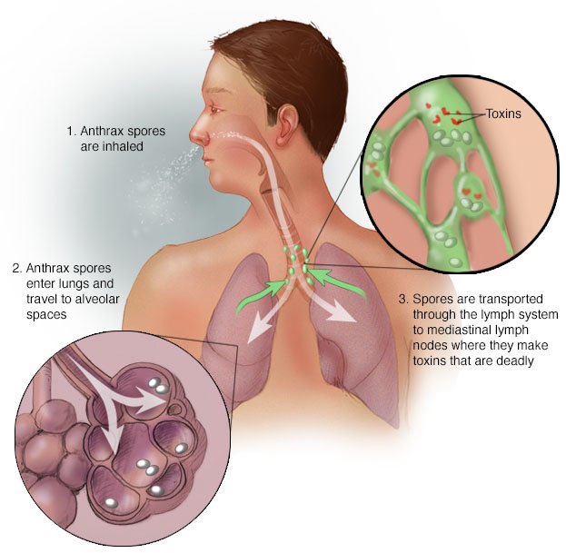 🔸️أخيراً في شهر اكتوبر عام ٢٠٠١م وبعد أحداث الحادي عشر من سبتمبر تم ارسال طردين بريدية الى عضو في مجلس الشيوخ الامريكي و إلى مبنى صحيفة شهيرة وكانت مليئة ببودرة بيضاء بعد تحليلها وجدوا انها تحتوي بكتيريا الجمرة الخبيثة كانت اول حالة جمرة خبيثة في الولايات المتحدة منذ عام ١٩٧٦م