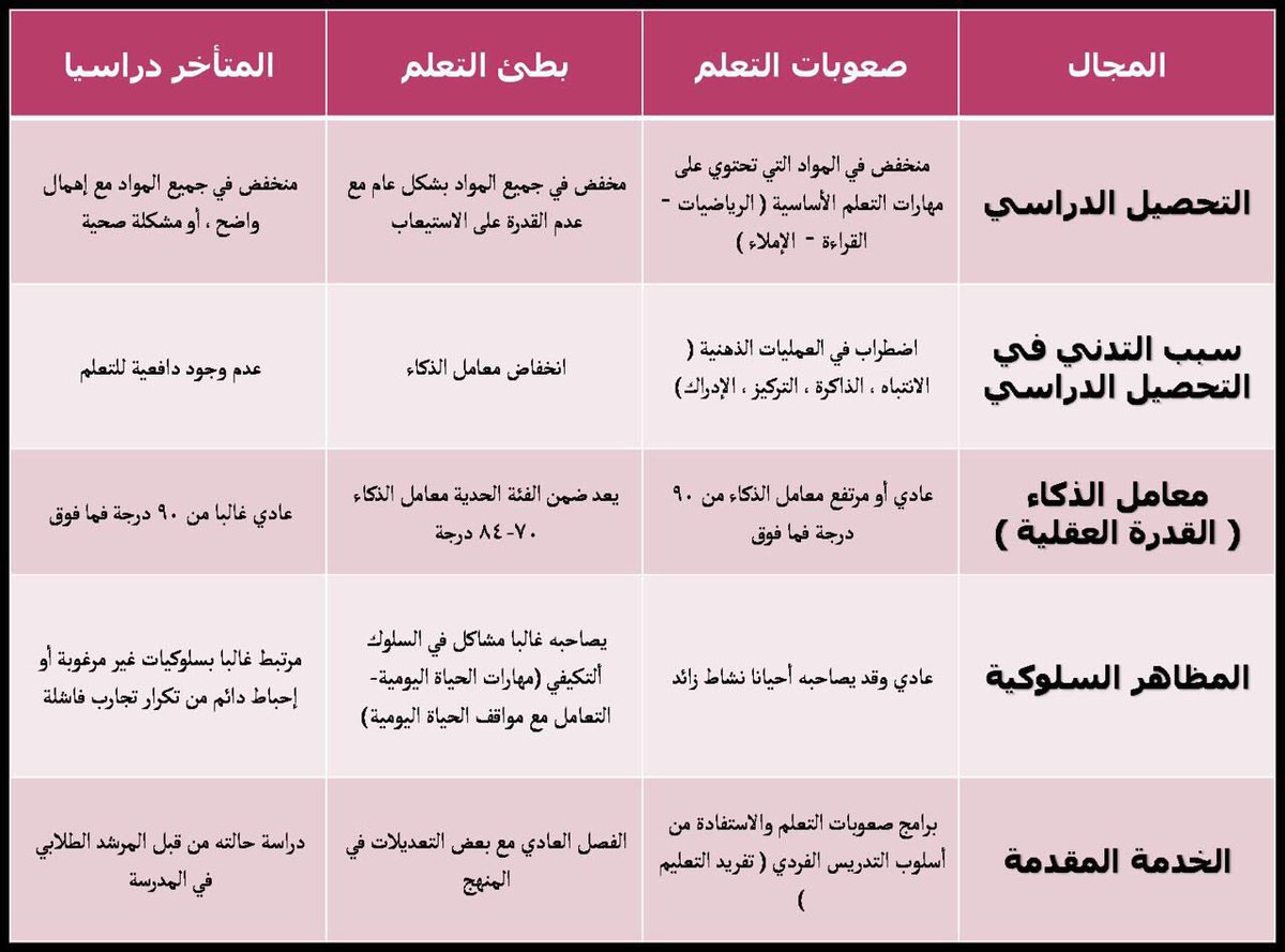 بطء التعلم / يكون في ماده او مجموعه مواد ويكون نسبه ذكاءه 80 تقريبا