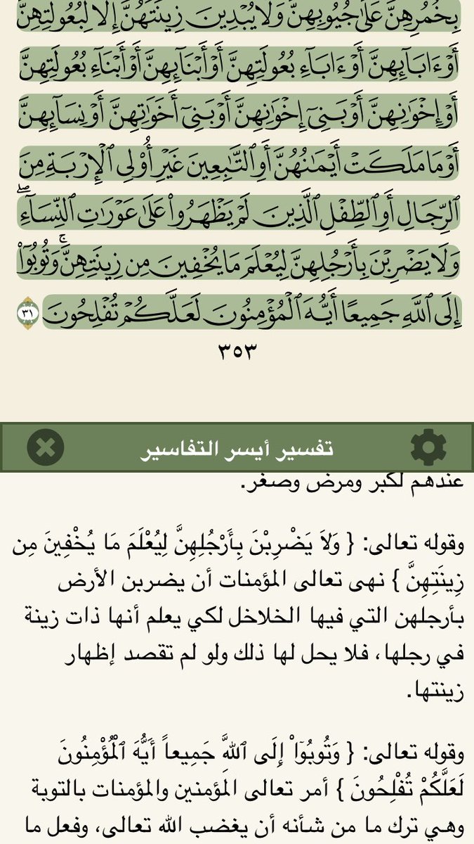 نهى الله عزوجل عن إظهار الزينة، فمن شروط الحجاب أن لا يكون زينة، فلا تضع المرأة المكياج ولا تلبس #العباية المزخرفة ولا تلبس البنطال ولا التنانير ولا الألوان الملفتة للنظر، ولا أي شيء فيه زينة