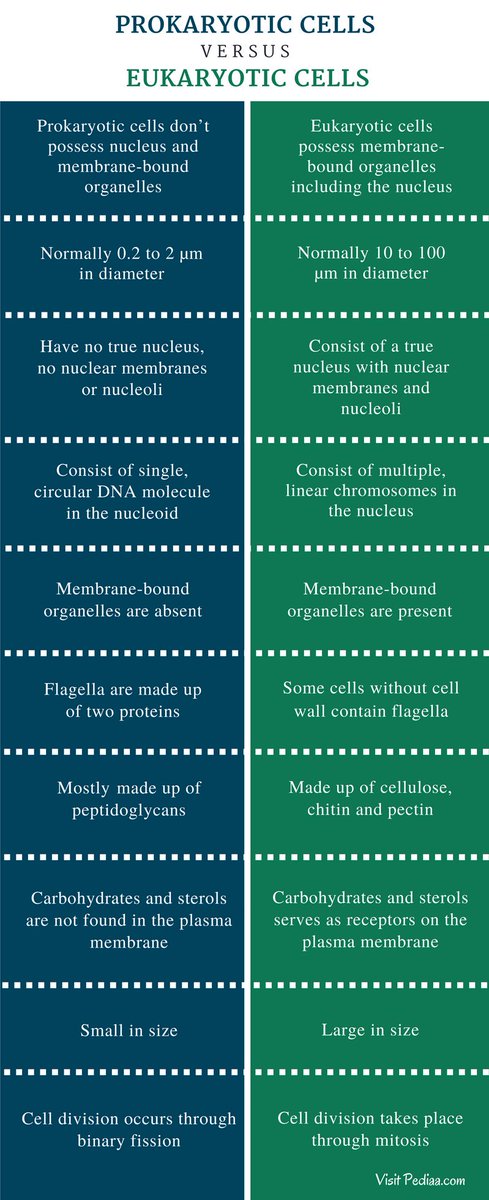 يوضح هذا الجدول أبرز الاختلافات بين الخلايا البدائية النواة و الخلايا الحقيقية النواة