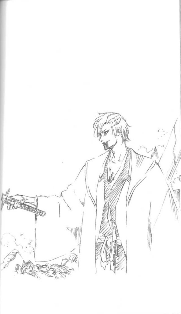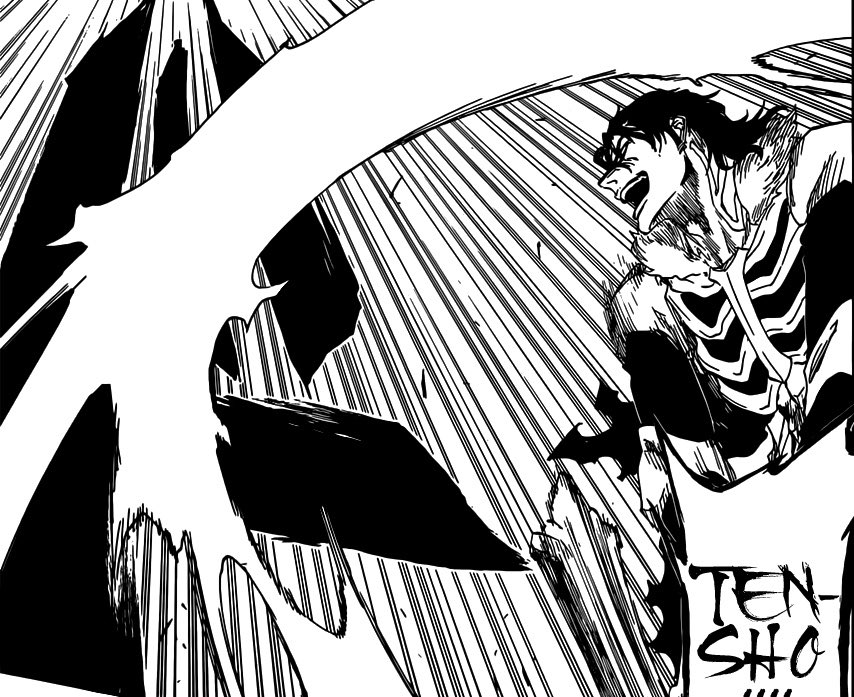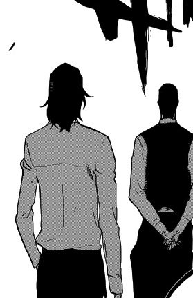 "إرجاع العالم إلى السابق أم قتل والده وتحريره؛ ما الحل الأمثل؟، على أي حال، يوهاباخ امتّص قوة الريو وهو حاليًا كبديل للريو. ياللسخرية، ألا تتفق معي كيوراكو؟ هل من المفترض أن اصدق بأن رجلًا مثلك لا يعلم عن هذه الأمور بينما اشخاص مثل ايزن وكيسكي استطاعوا جمع المعلومات لسنوات ؟"