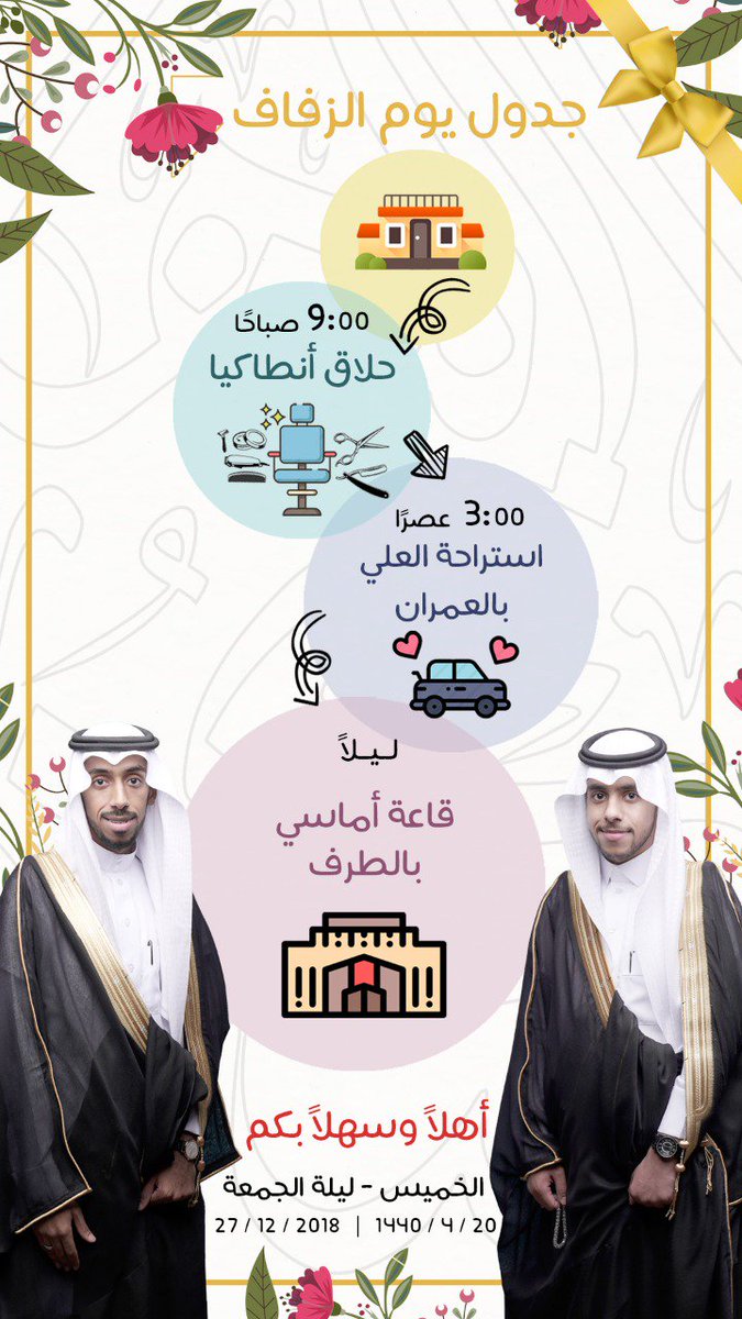 الحمدلله اللي جا الوقت اللي أدعيكم فيه لحفل عرسهم و زفافهم 🎊