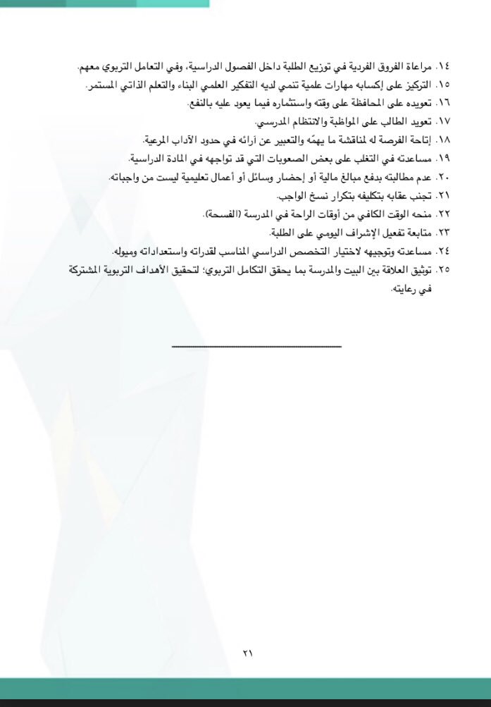 تذكر أن لإبنك حق وعليه حقوق وواجبات ولم يوضع هذا الدليل الا من أجل الوصول بابنك الى مصافي النجاح والتميز في الانضباط الأخلاقي والسلوكي داخل وخارج المدرسة.