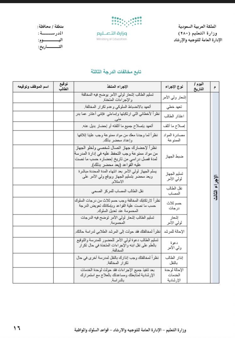 وفقاً لـ #الدليل_الإجرائي_للسلوك_والمواظبة