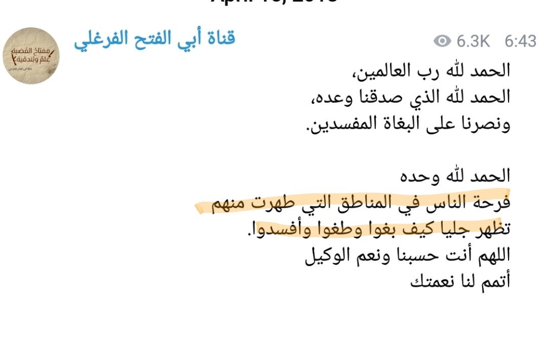 استحل الجولاني وأميره البغدادي دماء أهل السنة لانهم لم يقروا إمارتهم :)