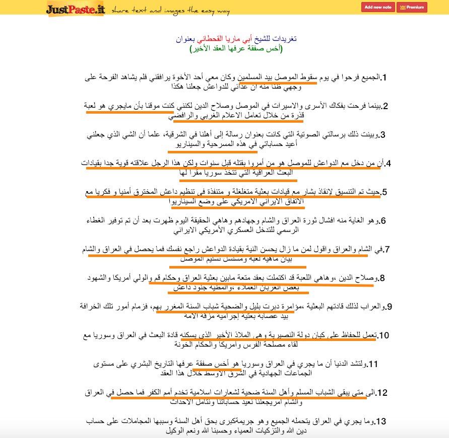 الهراري يقول بأن قيادة داعش التي ارسلته هو الجولاني الى سوريا مخترقة بالعملاء وان قتال داعش للمالكي و سيطرتها على الموصل ماهي الا مسرحية