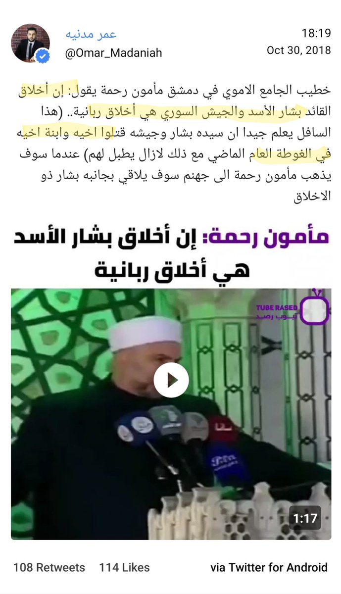 خطيب بشار مأمون رحمة : إن أخلاق بشار أخلاق ربانية