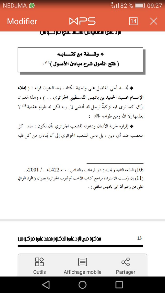 قال في خربشاته [ حوار هادئ مع الشيخ الدكتور محمد علي فركوس ( ح:03 ) ]: