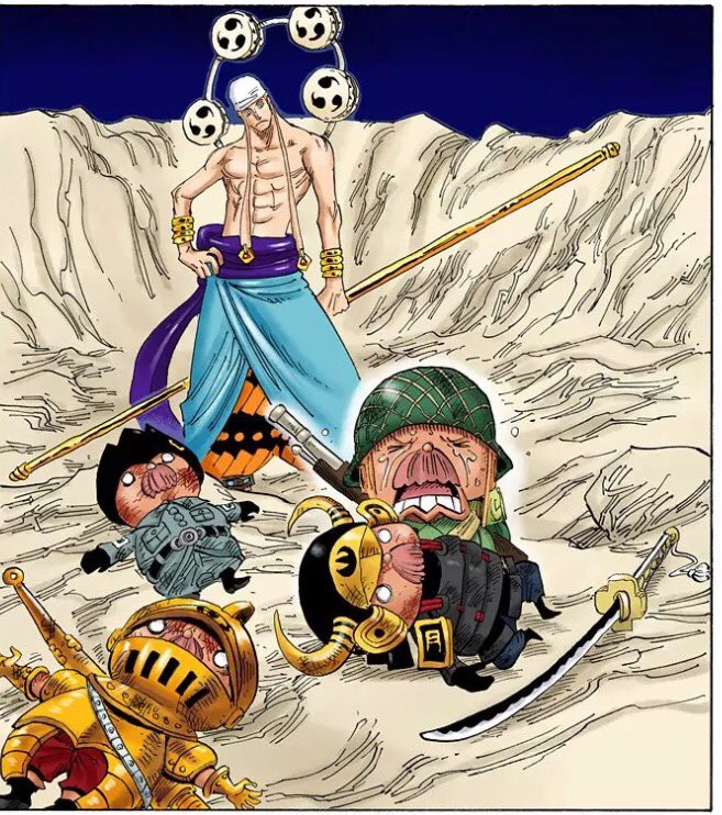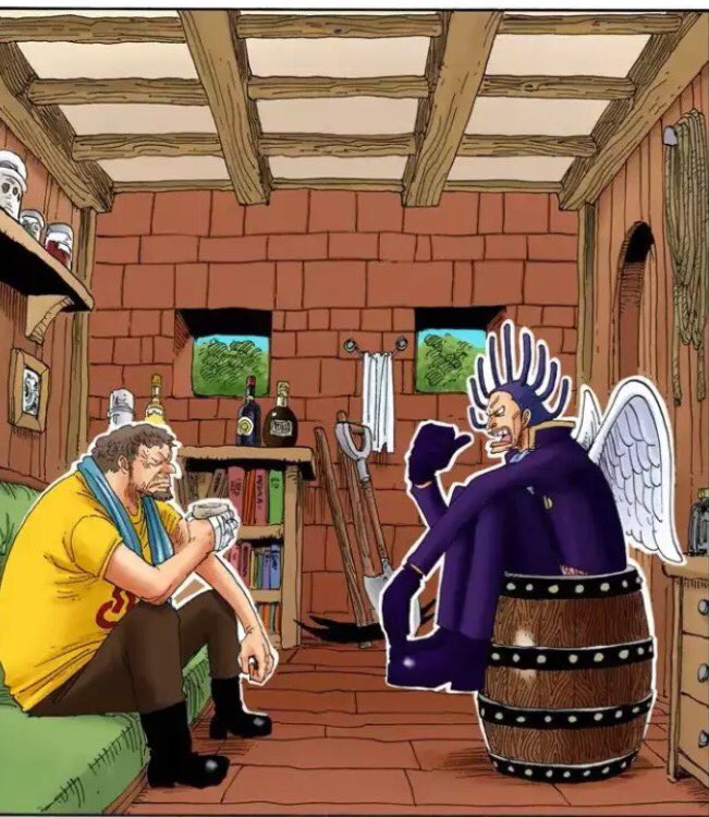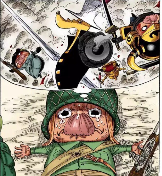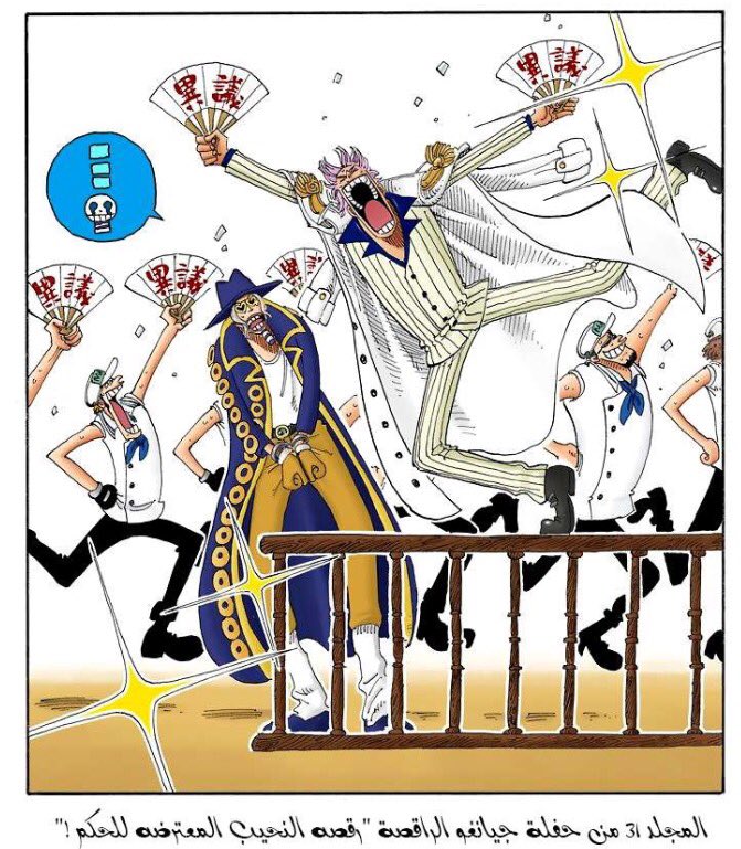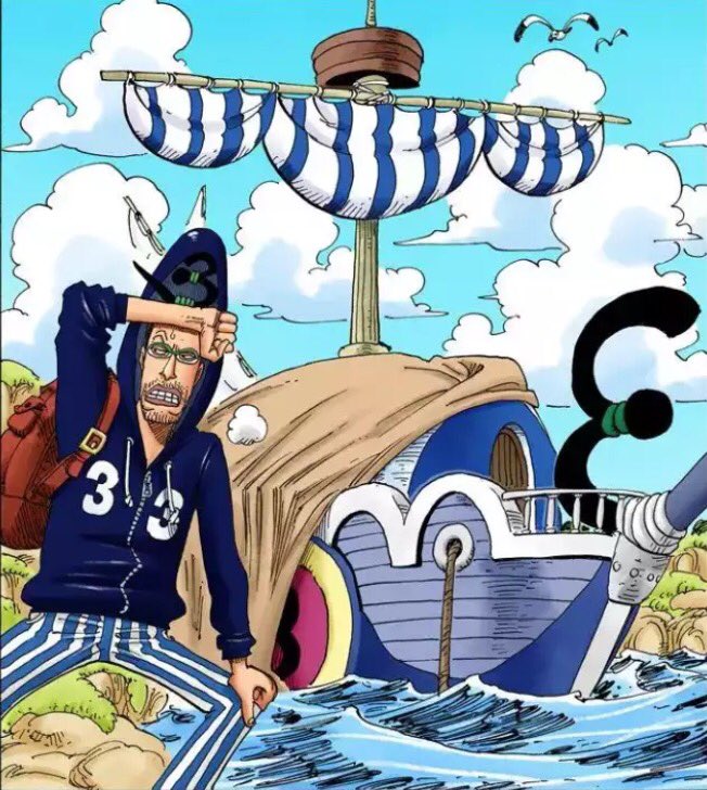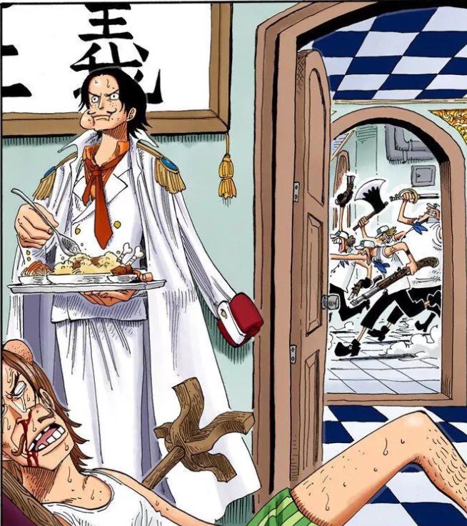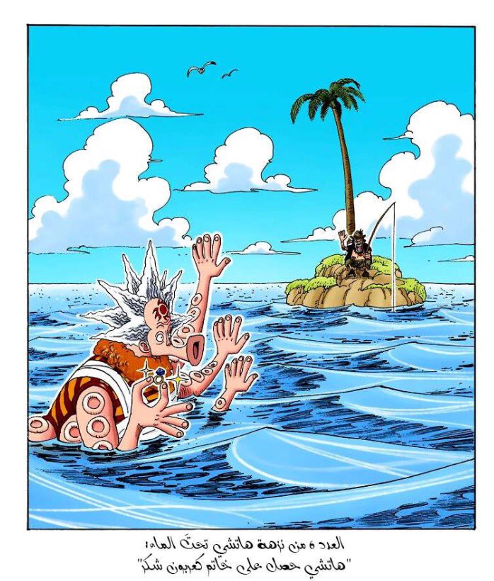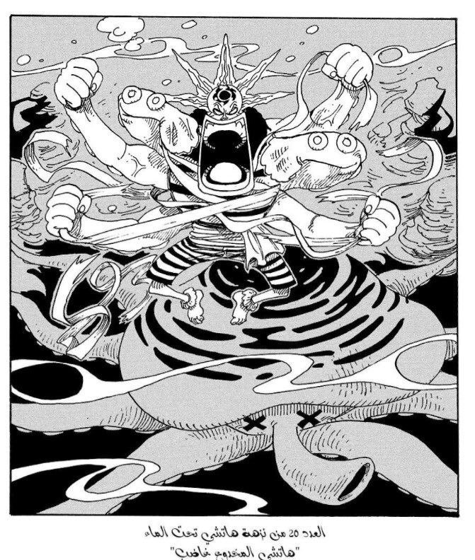بعد أن هزمه لوفي وقذفه بعيدا في البحر وفقد جسمه يحاول نجاه من الأسماك