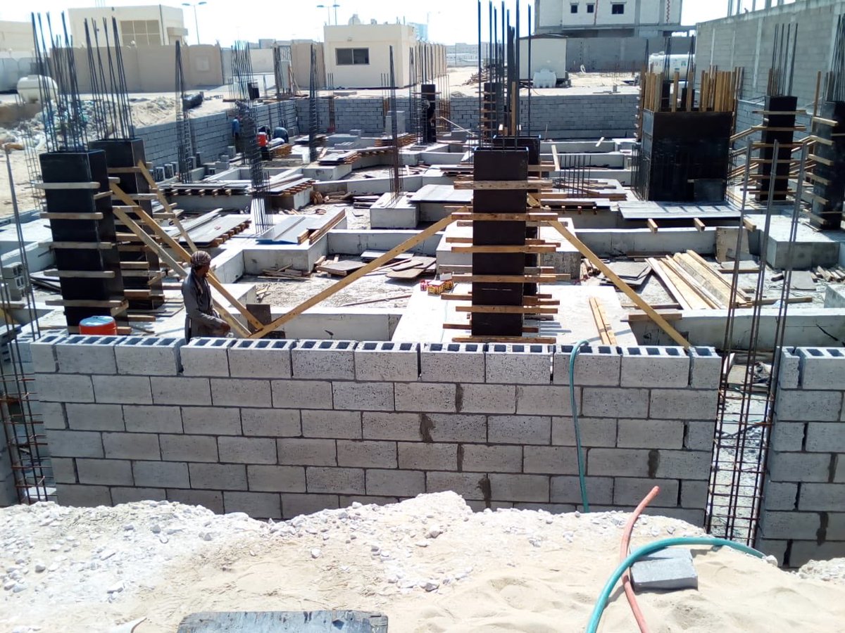 صب سقف الدور الارضي و هكذا تستمر الأعمال أعمده و سقف كما تم ذكره سابقا