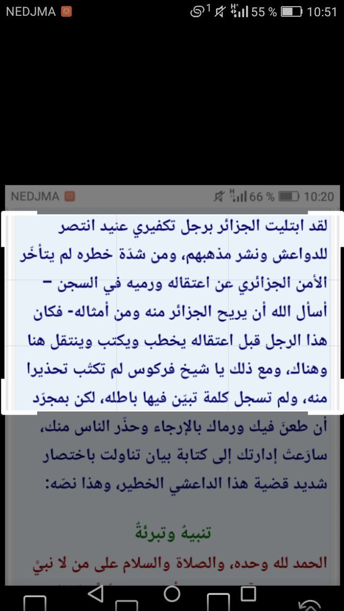 «الشيخ الدكتور محمد علي فركوس صبر عليه ونصحه طمعا في رجوعه » اهـ