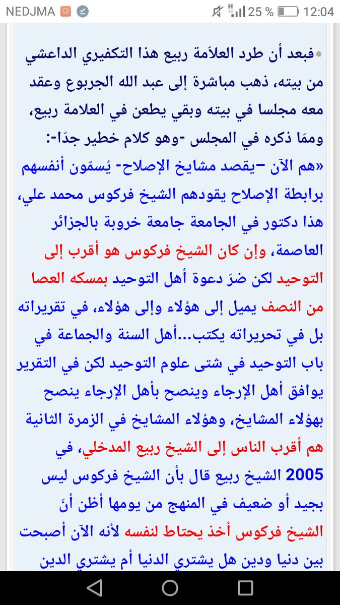لكن سأكتفي بنقل جواب أخوك خالد حمودة -هداه الله- [ تعليقا على بيان موقع الشيخ فركوس في بدر الدين مناصرة في منتدى التصفية والتربية المسروق ] :