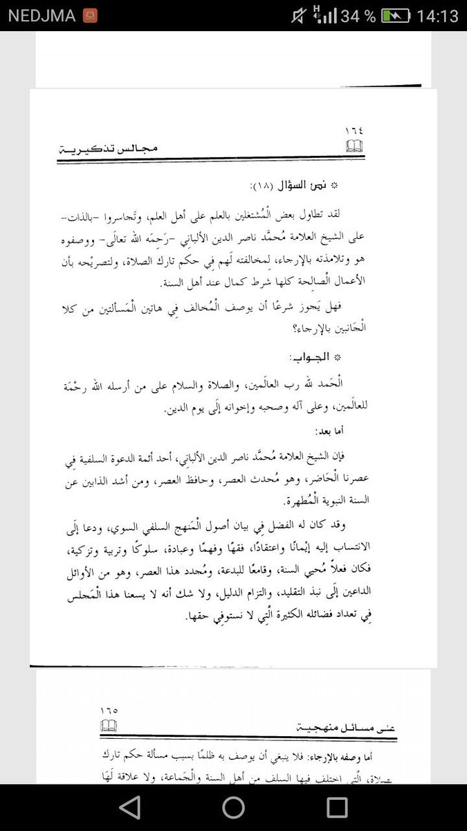 - تلبيس كون الشيخ فركوس قال في حق الإمام الألباني وافق مرجئة الفقهاء .