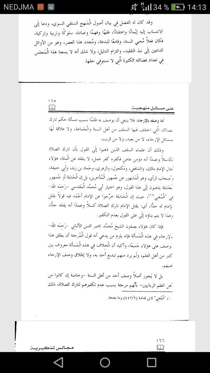 - قال « في تحريراته يكتب بأسلوب أهل السنة والجماعة » ،ثم قال « لكن في التقرير يوافق أهل الإرجاء » ؟!