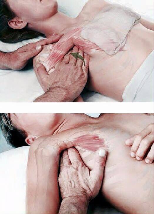 2- نحرك التدليك من أعلى الصدر إلى الأكتاف.
