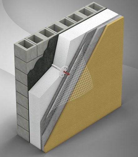 ٢- تغليف المبنى بالعزل من الخارج بشكل كامل