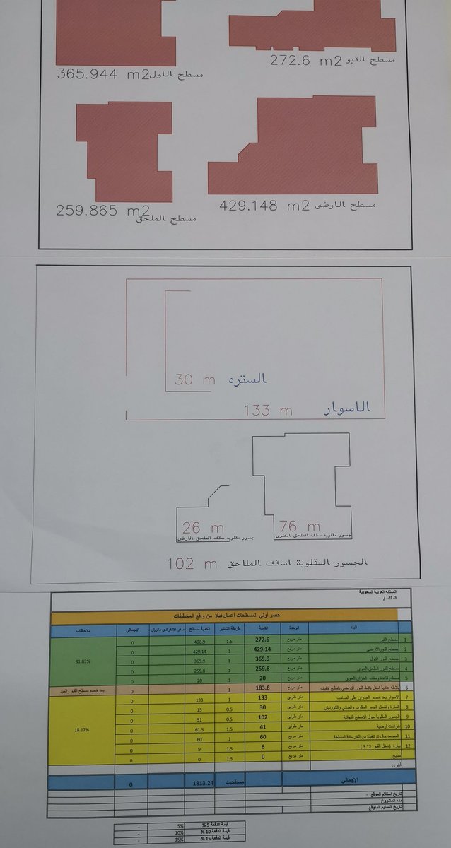 3_ بعد الإنتهاء من التصميم وقبل البدء بالتنفيذ وإختيار المقاول نوصي بعمل حصر مبدئي للمسطحات وبنود الأعمال لتستطيع معرفة قيمة الأعمال التقديرية ومنها تستطيع توزيع مبالغ الدفعات على مراحل التنفيذ المختلفة