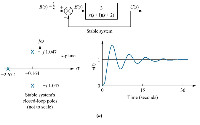 من النظر إلى الصورة نلاحظ وجود خط رجعة من y يسمى الأثر الرجعي feedback، يطرح من القيمة المطلوبة r(t) و تكون النتيجة دالة تسمى دالة الخطأ e(t) تدخل على مثبت السرعة، و عليها يعطي أوامره للمحرك بزيادة العمل أو بالتوقف، و قد يكون النظام مرتبطًا بالمكابح للتحكم الشامل بالمركبة.