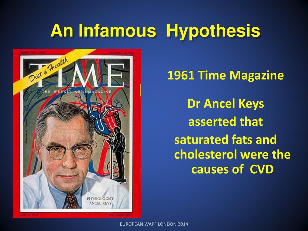 5️⃣1952 قامAncel Keysمن جامعة منيسوتا تخصص فسيولوجي بدراسة معلولة نسب فيها امراض القلب الى الدهون وكان الرئيس قد اصيب بنوبة قلبية فدعم نظرية انسل هو وطبيبه وساعد على تبنيها ان انسل كان واثقاًومقاتلاًضارياًعن افكاره ولكونه عضواً في جمعية القلب ووجدت نظريته قبولاًعندالشركات التجارية